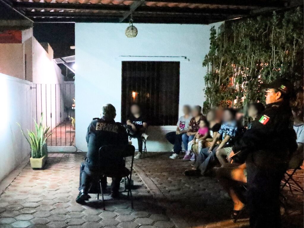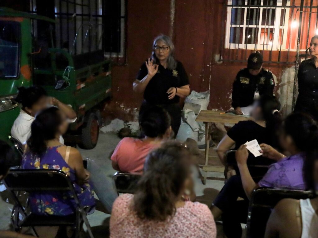 Mérida, Yucatán., 10 de abril de 2026..- Además de las visitas, se han realizado reuniones vecinales en domicilios donde se dan pláticas de prevención, a fin de que las personas sepan de qué manera reaccionar ante cualquier hecho sospechoso que ponga en peligro la integridad de las y los vecinos.