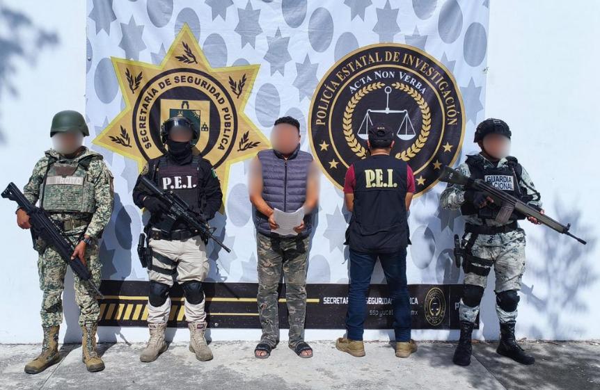 Mérida, Yucatán, a 2 de enero de 2026.- Hoy viernes, agentes investigadores de la Secretaría de Seguridad Pública (SSP) en coordinación con la Fiscalía General del Estado (FGE) y apoyo de fuerzas federales, detuvieron a José Manuel “N”, de 49 años, originario de Mérida, Yucatán, de oficio mecánico.