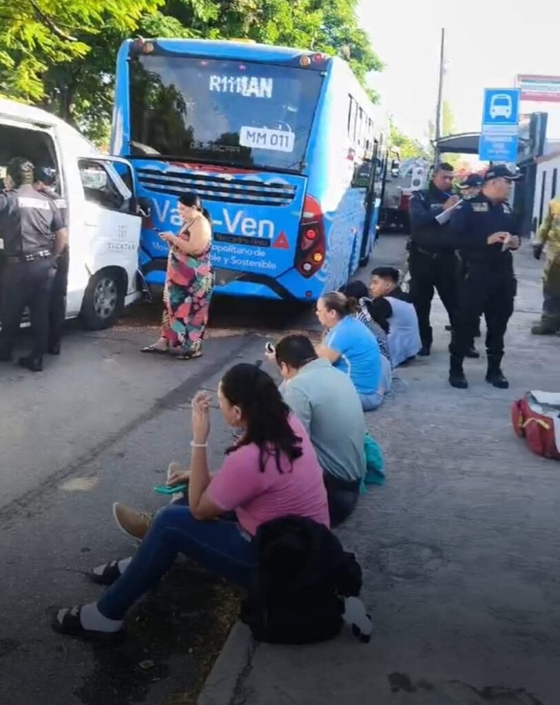 El conductor de la combi se estampó contra la parte trasera del autobús, lo que ocasionó que varios usuarios sufrieran lesiones por lo que paramédicos de la SSP y bomberos acudieron al lugar para atender a los afectados y verificar que no hubiera derrames de combustible.
