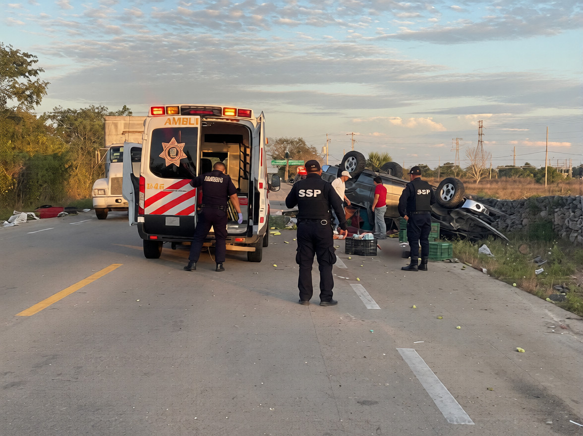 Un aparatoso accidente de tránsito se registró en el tramo carretero federal Tizimín-Mérida, a la altura del kilómetro 106, en el tramo Buctzotz-Sucilá.
