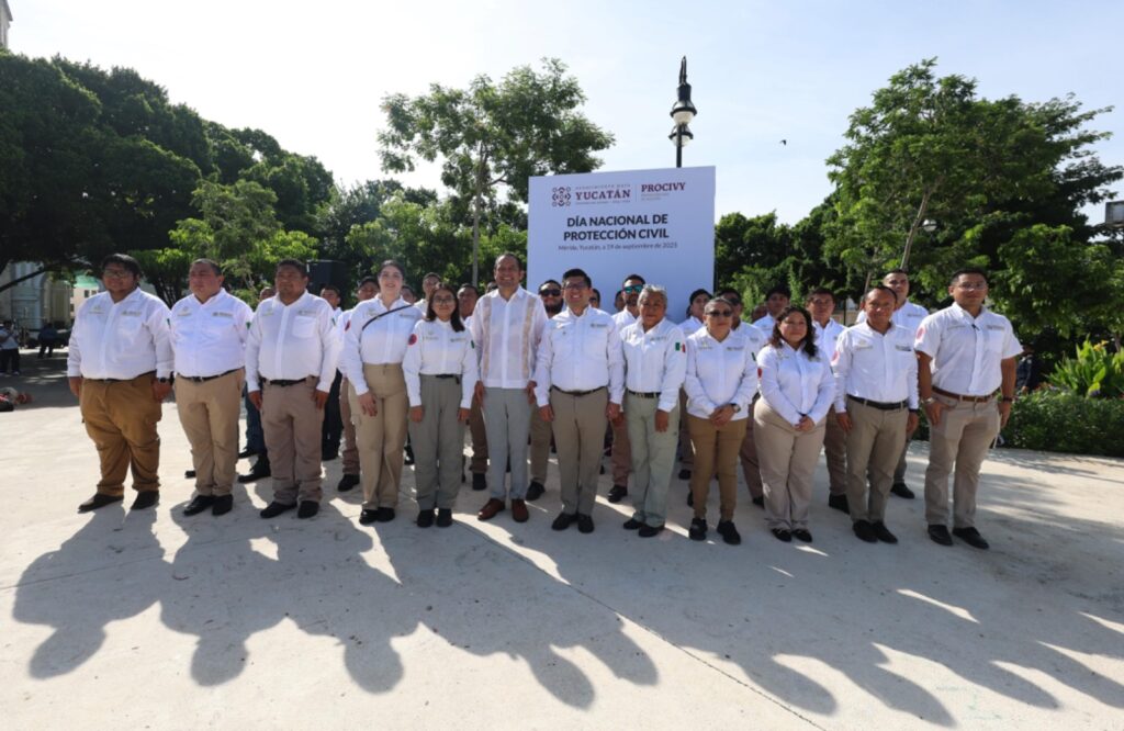Mérida, Yucatán, a 19 de septiembre de 2025.- Con una ceremonia cívica luctuosa y la participación de más de mil 500 inmuebles en el Segundo Simulacro Nacional 2025, Yucatán se unió a la conmemoración del Día Nacional de Protección Civil, que recuerda a las víctimas de los sismos ocurridos en 1985 y 2017 en la Ciudad de México.