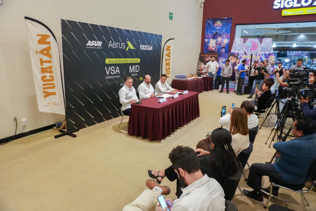 El anuncio fue encabezado por el secretario de Fomento Turístico, Darío Flota Ocampo; el director comercial de Aerus, Miguel Legorreta Hernández; y el administrador del Aeropuerto Internacional de Mérida, de Grupo ASUR, Óscar Carrillo Maldonado.